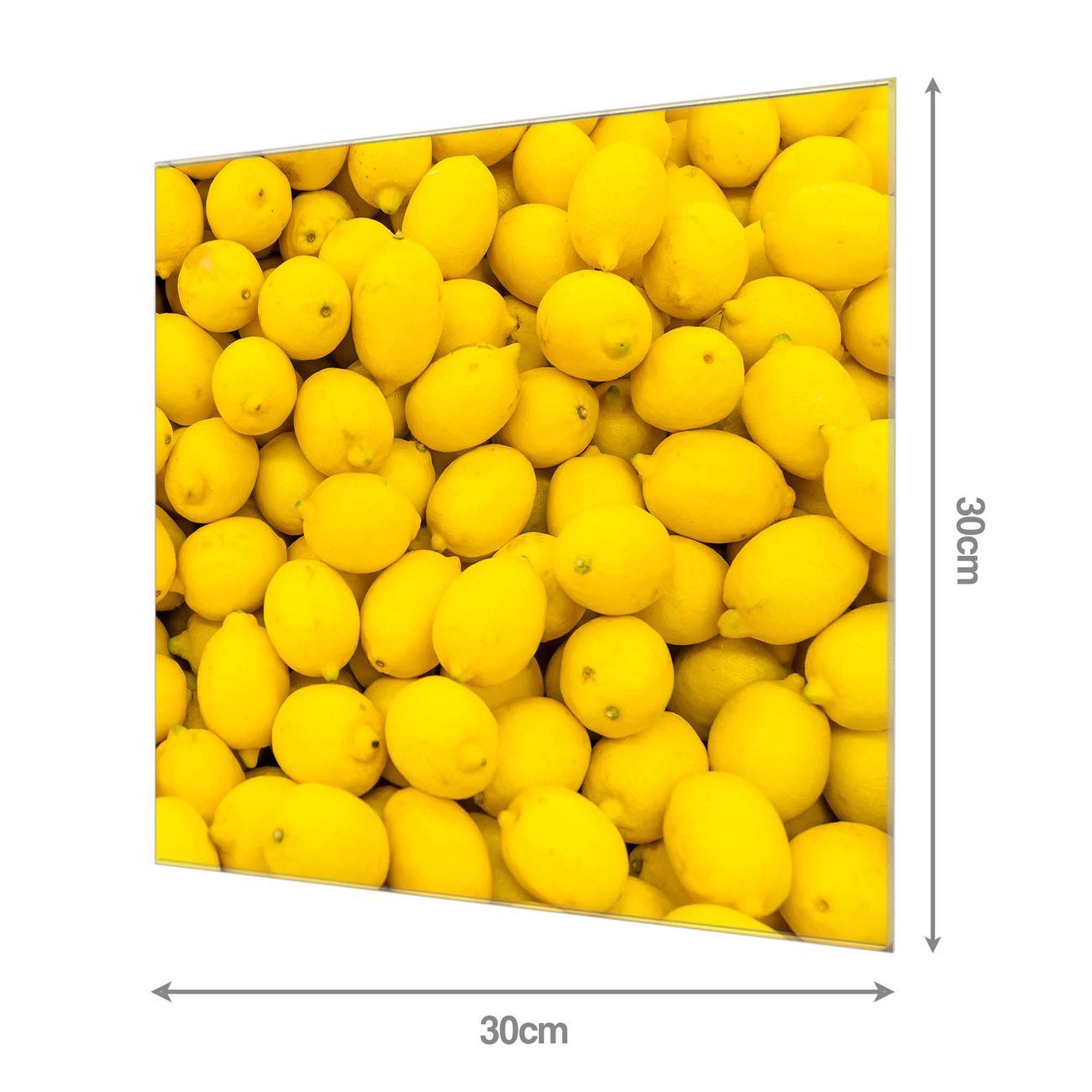 Material: 4mm Sicherheitsglas mit Metallrückwand Eigenschaften: beschreibbar, magnetisch, kratzfest Maße: 30x30x0,6cm, 1,89 kg schwer Motiv Nummer 11662 Zitronen Zubehör: inklusive 4 Neodym-Magnete