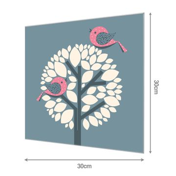 Material: 4mm Sicherheitsglas mit Metallrückwand Eigenschaften: beschreibbar, magnetisch, kratzfest Maße: 30x30x0,6cm, 1,89 kg schwer Motiv Nummer 11853 Zwei Rosa Vögel Zubehör: inklusive 4 Neodym-Magnete