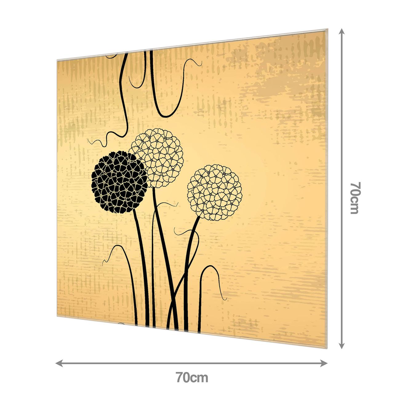 Material: 4mm Sicherheitsglas mit Metallrückwand Eigenschaften: beschreibbar, magnetisch, kratzfest Maße: 70x70x0,6cm, 10,50 kg schwer Motiv Nummer 12170 Zwiebel Vintage Zubehör: inklusive 4 Neodym-Magnete