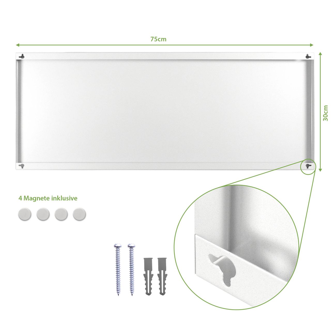 Motiv Wunschmotiv Nr. 10000 Größe: 30x75x2cm BxHxT Gewicht: ca. 1,50 kg Material: Stahl weiß lackiert, Premiumfolie Magnete: für Dekomagnete geeignet beschreibbar: Nein Format: Querformat Zubehör: 4 Magnete, 2 Schrauben und Dübel
