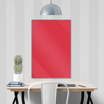 Material  4mm Sicherheitsglas mit Metallrückwand Eigenschaften  beschreibbar, magnetisch, kratzfest Maße  60x90x0,6cm, 8,10 kg schwer Farbe  Nummer 12 Feuerrot Zubehör  inklusive 4 Neodym-Magnete