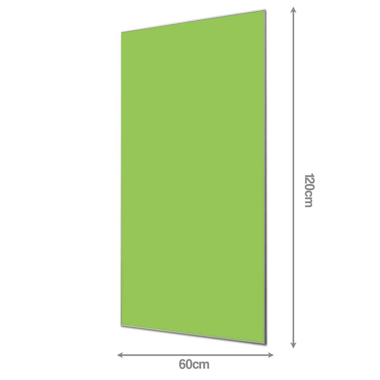 Material: 4mm Sicherheitsglas mit Metallrückwand Eigenschaften: beschreibbar, magnetisch, kratzfest Maße: 60x120x0,6cm, 10,80 kg schwer Farbe Nummer 0016 Limettengrün Zubehör: inklusive 4 Neodym-Magnete