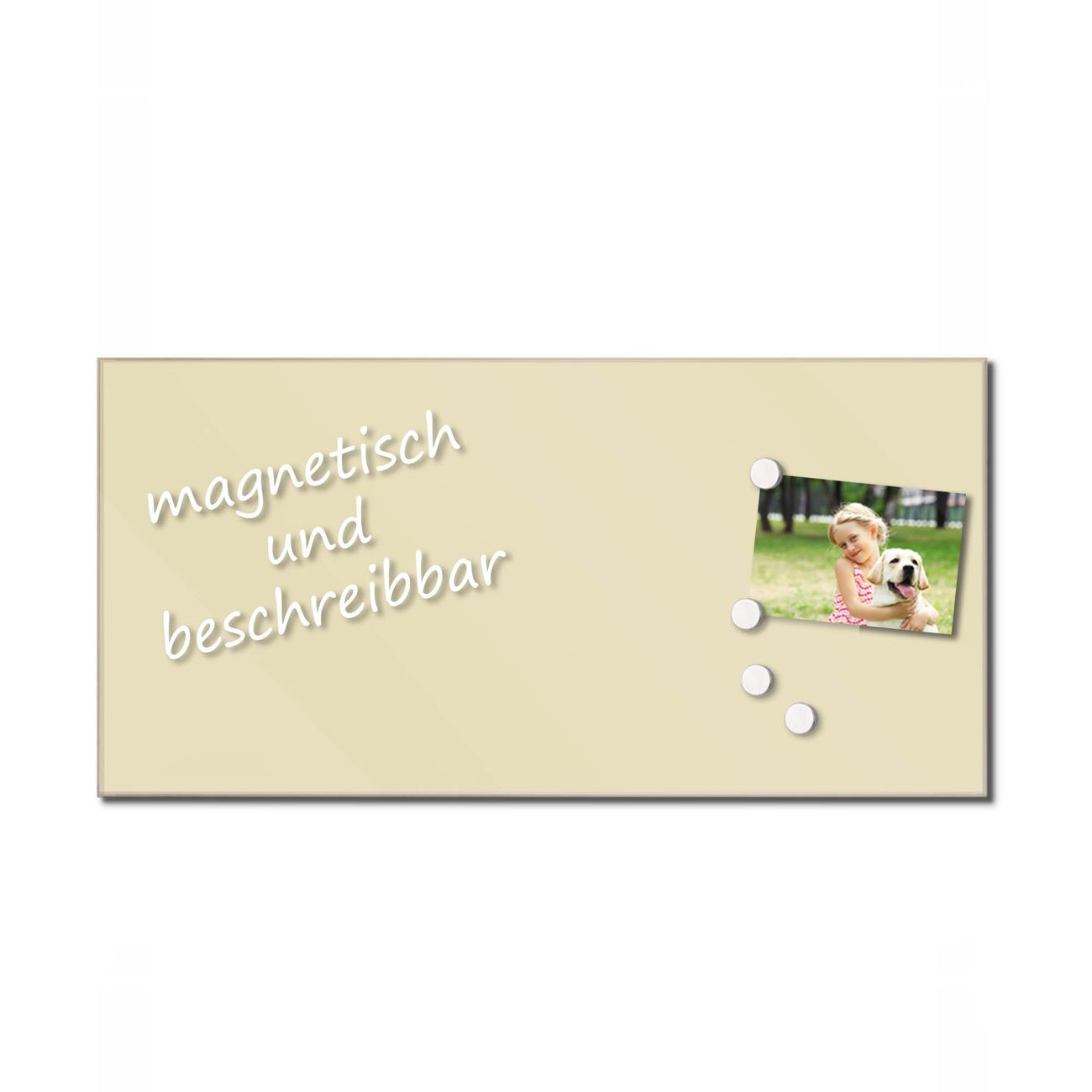 Material: 4mm Sicherheitsglas mit Metallrückwand Eigenschaften: beschreibbar, magnetisch, kratzfest Maße: 120x60x0,6cm, 10,80kg schwer Farbe Nummer 0022 Beige Zubehör: inklusive 4 Neodym-Magnete