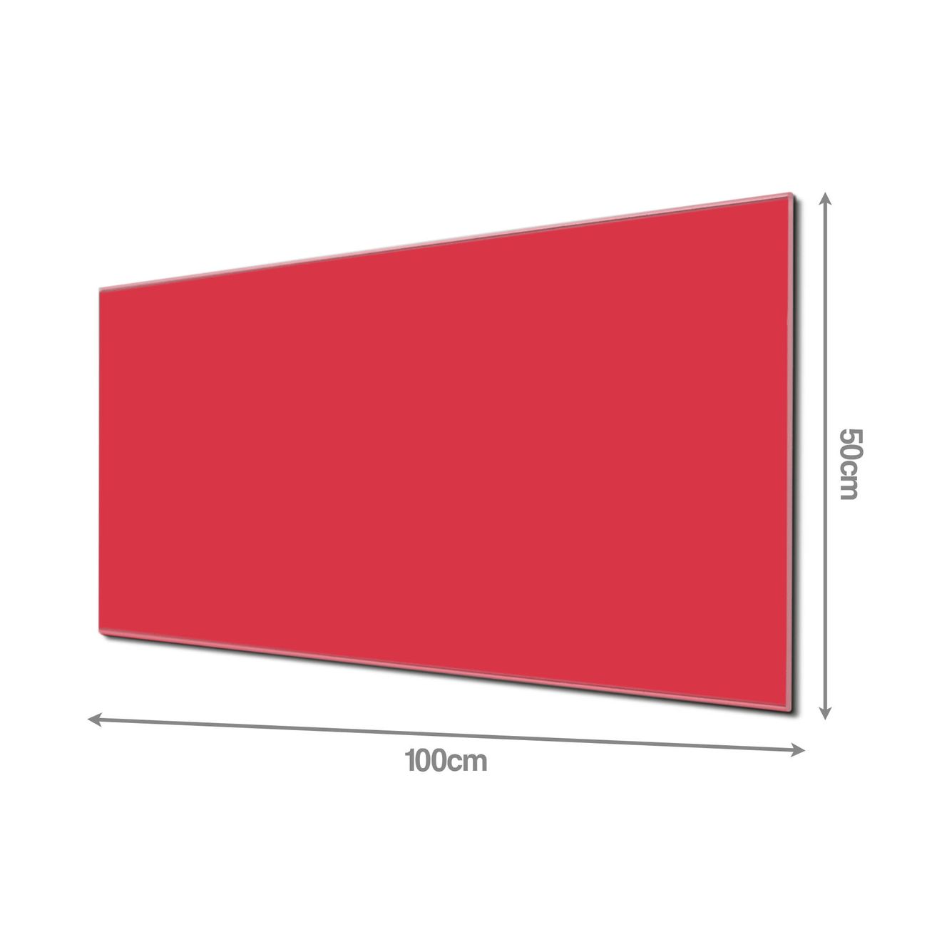 Material: 4mm Sicherheitsglas mit Metallrückwand Eigenschaften: beschreibbar, magnetisch, kratzfest Maße: 100x50x0,6cm, 7,50kg schwer Farbe Nummer 0012 Feuerrot Zubehör: inklusive 4 Neodym-Magnete