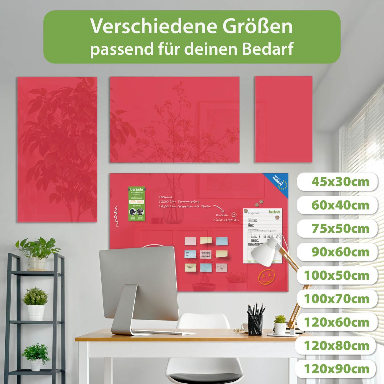 Die banjado Glas Magnettafel mit dem Motiv Farbe Feuerrot verbindet Funktionalität mit Stil. Sie ersetzt das Zettelchaos durch klare Strukturen und bringt dabei eine warme, natürliche Atmosphäre in Ihr Zuhause. Ob im Büro, in der Küche oder im Eingangsbereich - dieses Design-Board zieht Blicke an und sorgt für Ordnung mit Charakter.