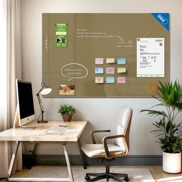 Das Magnetboard besteht aus gehärtetem Glas, die Rückwand aus einem magnetischen Stahlblech. Durch die superflache Bauweise haben Sie die Wahl aus einer Vielzahl von Befestigungsmöglichkeiten. Sie können die Magnettafel mit einem Montagekleber superflach an die Wand kleben oder Sie wählen eines unserer passenden Befestigungssets, welches eine optimale Montage garantiert. Die Magnetwand besteht aus zertifiziertem Sicherheitsglas. Durch die mitgelieferten 4 Neodym-Magnete ist Ihre Glas Magnettafel sofort einsatzbereit. Wichtige Notizen und Informationen können Sie einfach mit Kreidestiften auf die Glasmagnettafel schreiben und rückstandslos wieder entfernen.