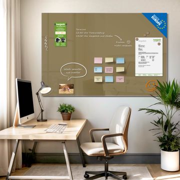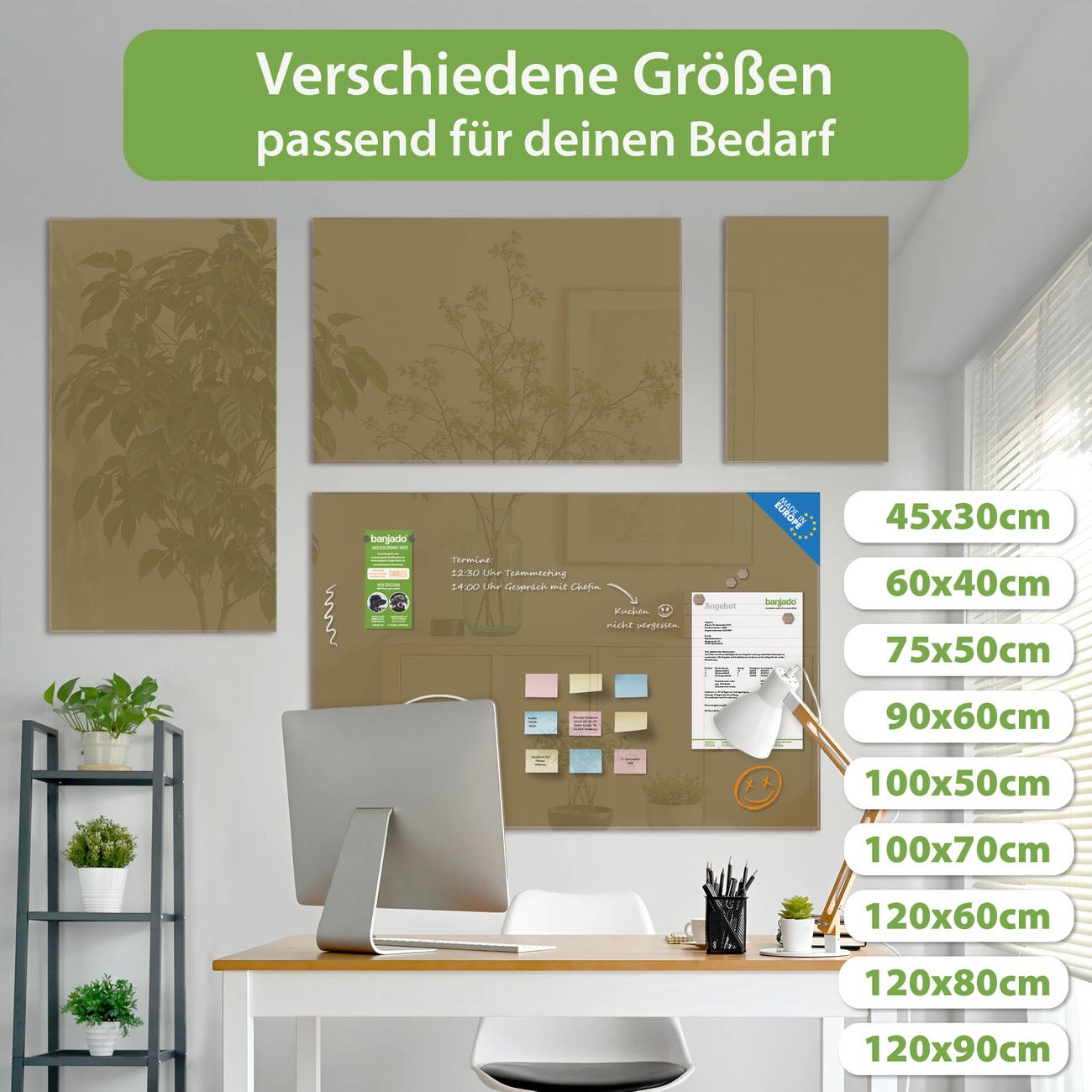 Die banjado Glas Magnettafel mit dem Motiv Farbe Gold Metallic verbindet Funktionalität mit Stil. Sie ersetzt das Zettelchaos durch klare Strukturen und bringt dabei eine warme, natürliche Atmosphäre in Ihr Zuhause. Ob im Büro, in der Küche oder im Eingangsbereich - dieses Design-Board zieht Blicke an und sorgt für Ordnung mit Charakter.