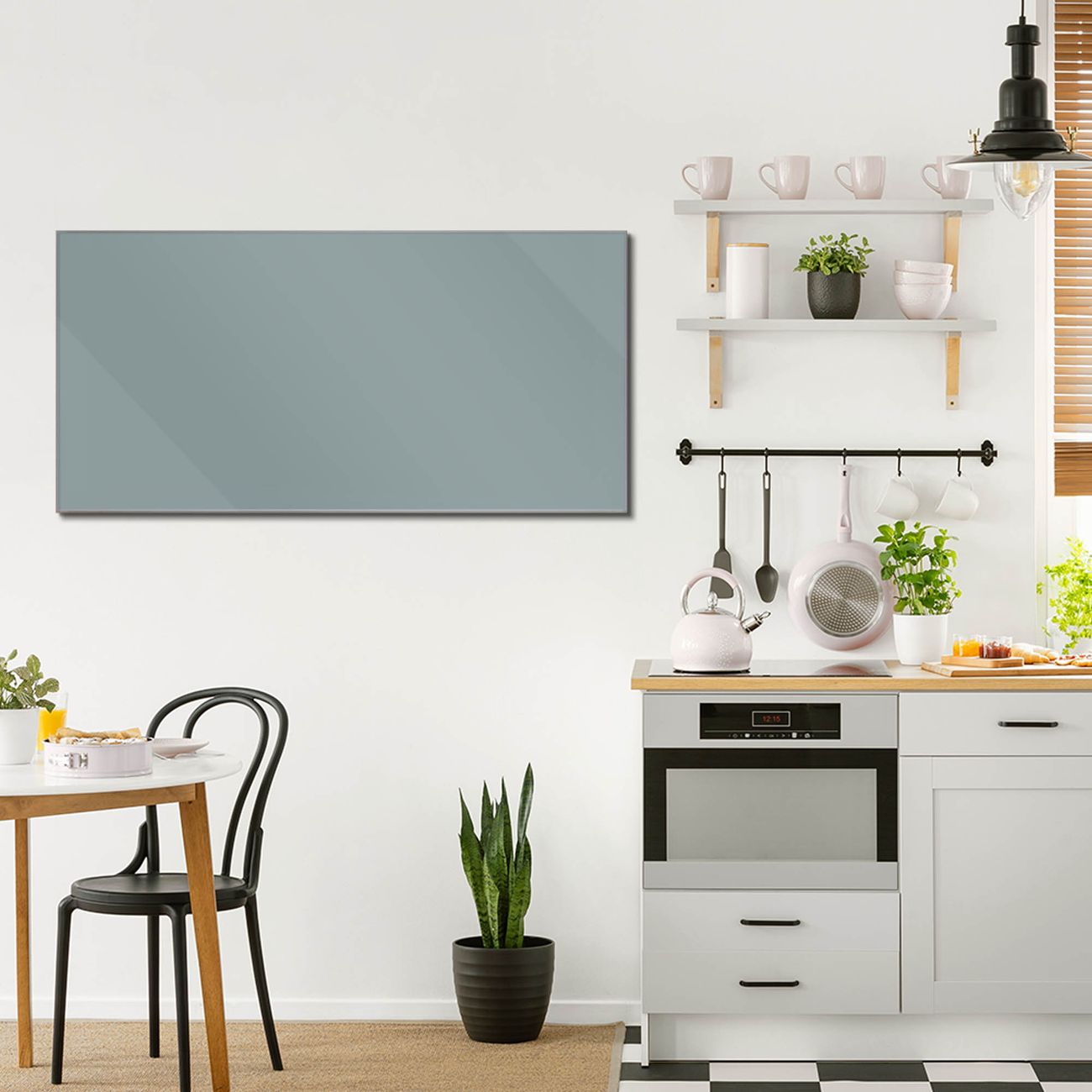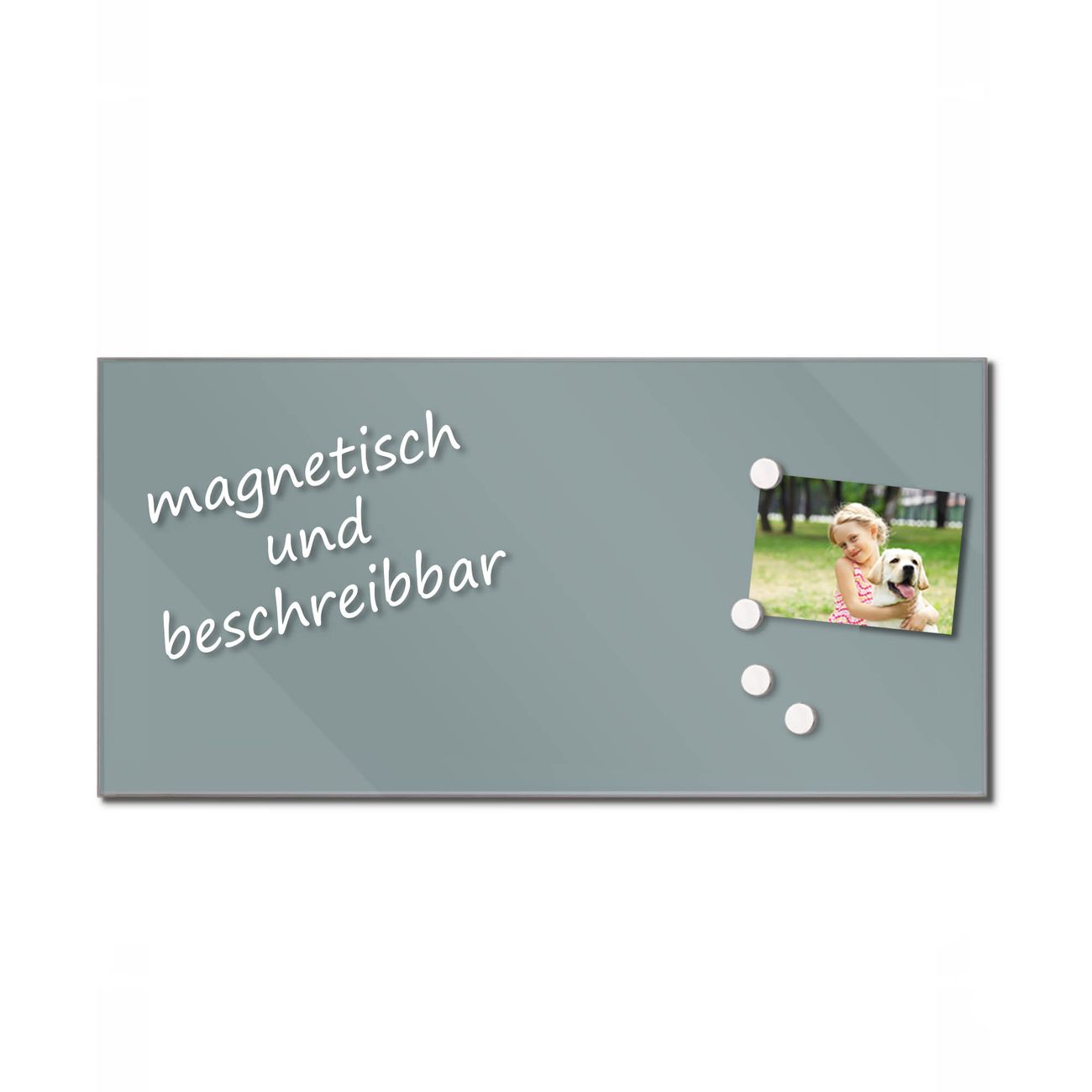 Material: 4mm Sicherheitsglas mit Metallrückwand Eigenschaften: beschreibbar, magnetisch, kratzfest Maße: 120x60x0,6cm, 10,80kg schwer Farbe Nummer 0028 Grau Zubehör: inklusive 4 Neodym-Magnete