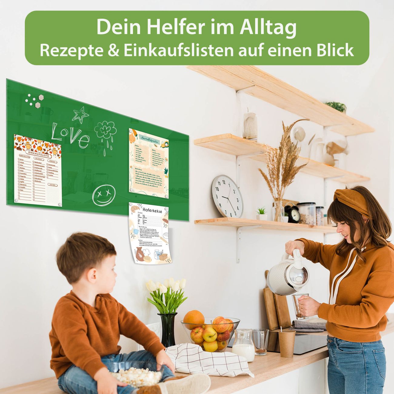 Ein Stück Design, das Ihren Alltag organisiert. Schreiben, heften, inspirieren - alles an einem Ort. Qualität, die man spürt. Montage leicht gemacht. Handwerk mit Herz - veredelt in Sachsen. Einzigartiges Design mit Motiv Farbe Grün Beschreibbare Glasoberfläche, leicht zu reinigen Starke Magnetkraft durch Stahlrückwand Inklusive 4 Neodym-Magneten Flexible Montageoptionen Handveredelt in Sachsen - Qualität, die bleibt