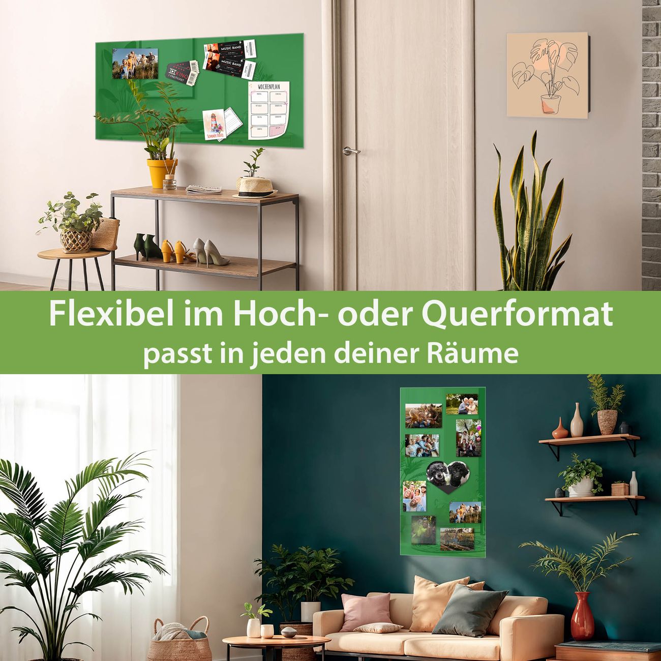 Die banjado Glas Magnettafel mit dem Motiv Farbe Grün verbindet Funktionalität mit Stil. Sie ersetzt das Zettelchaos durch klare Strukturen und bringt dabei eine warme, natürliche Atmosphäre in Ihr Zuhause. Ob im Büro, in der Küche oder im Eingangsbereich - dieses Design-Board zieht Blicke an und sorgt für Ordnung mit Charakter.