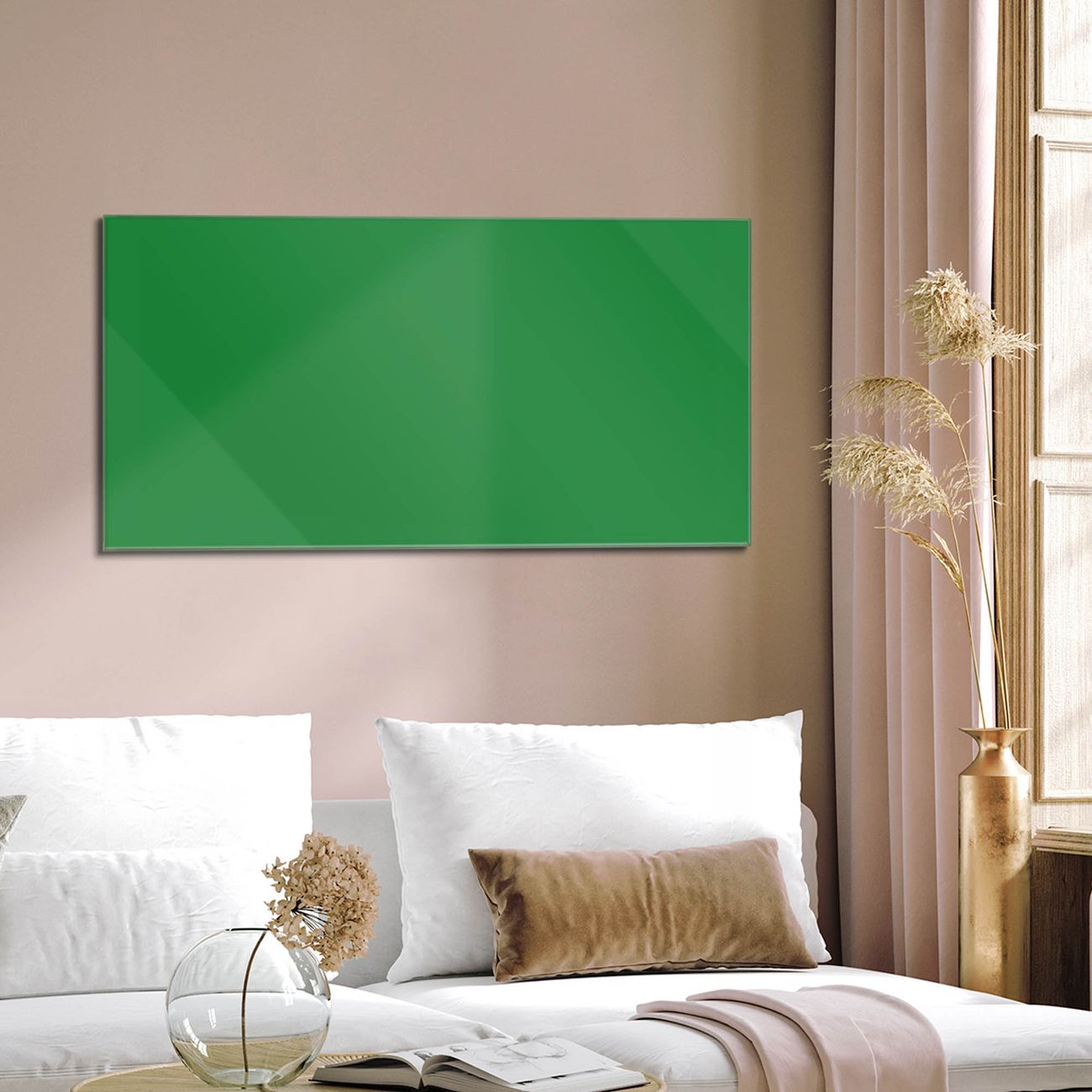 Material: 4mm Sicherheitsglas mit Metallrückwand Eigenschaften: beschreibbar, magnetisch, kratzfest Maße: 120x60x0,6cm, 10,80kg schwer Farbe Nummer 0017 Grün Zubehör: inklusive 4 Neodym-Magnete