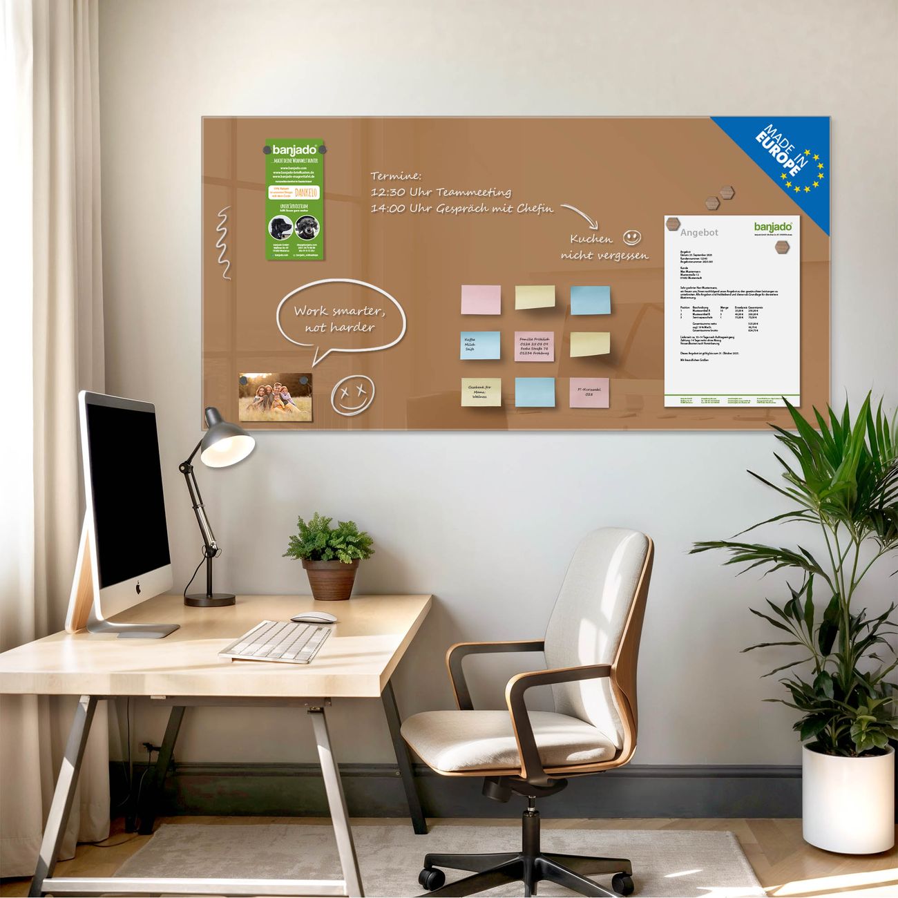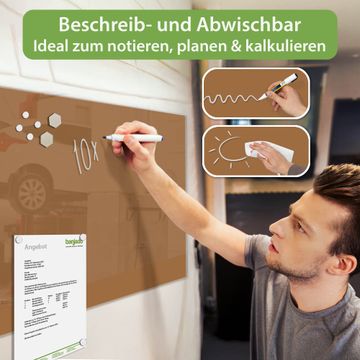 Die banjado Glas Magnettafel mit dem Motiv Farbe Kupfer Metallic verbindet Funktionalität mit Stil. Sie ersetzt das Zettelchaos durch klare Strukturen und bringt dabei eine warme, natürliche Atmosphäre in Ihr Zuhause. Ob im Büro, in der Küche oder im Eingangsbereich - dieses Design-Board zieht Blicke an und sorgt für Ordnung mit Charakter.