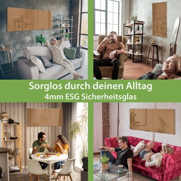 Material: 4mm Sicherheitsglas mit Metallrückwand Eigenschaften: beschreibbar, magnetisch, kratzfest Maße: 100x50x0,6cm, 7,50kg schwer Farbe Nummer 0025 Kupfer Metallic Zubehör: inklusive 4 Neodym-Magnete