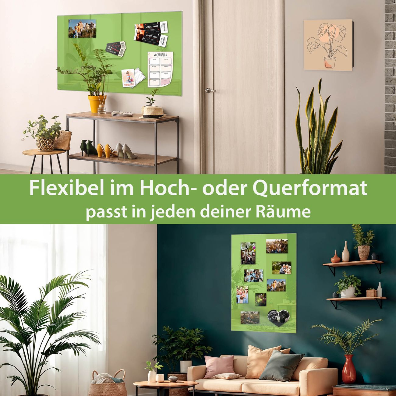 Die banjado Glas Magnettafel mit dem Motiv Farbe Limettengrün verbindet Funktionalität mit Stil. Sie ersetzt das Zettelchaos durch klare Strukturen und bringt dabei eine warme, natürliche Atmosphäre in Ihr Zuhause. Ob im Büro, in der Küche oder im Eingangsbereich - dieses Design-Board zieht Blicke an und sorgt für Ordnung mit Charakter.