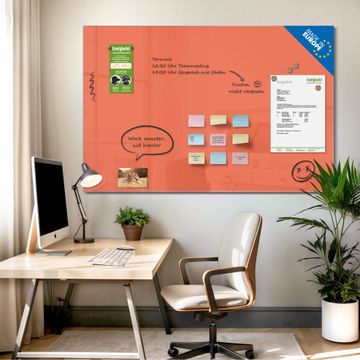 Die banjado Glas Magnettafel mit dem Motiv Farbe Orange verbindet Funktionalität mit Stil. Sie ersetzt das Zettelchaos durch klare Strukturen und bringt dabei eine warme, natürliche Atmosphäre in Ihr Zuhause. Ob im Büro, in der Küche oder im Eingangsbereich - dieses Design-Board zieht Blicke an und sorgt für Ordnung mit Charakter.