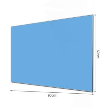 Material: 4mm Sicherheitsglas mit Metallrückwand Eigenschaften: beschreibbar, magnetisch, kratzfest Maße: 90x60x0,6cm, 8,10kg schwer Farbe Nummer 0019 Pastellblau Zubehör: inklusive 4 Neodym-Magnete