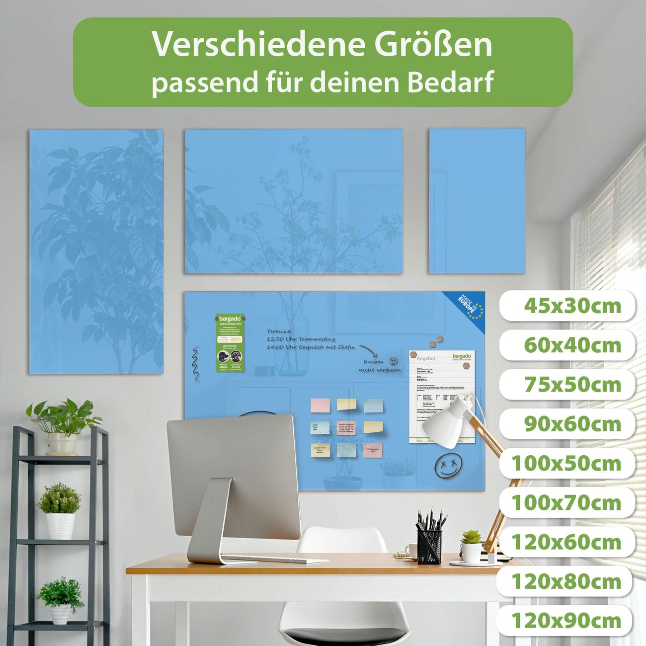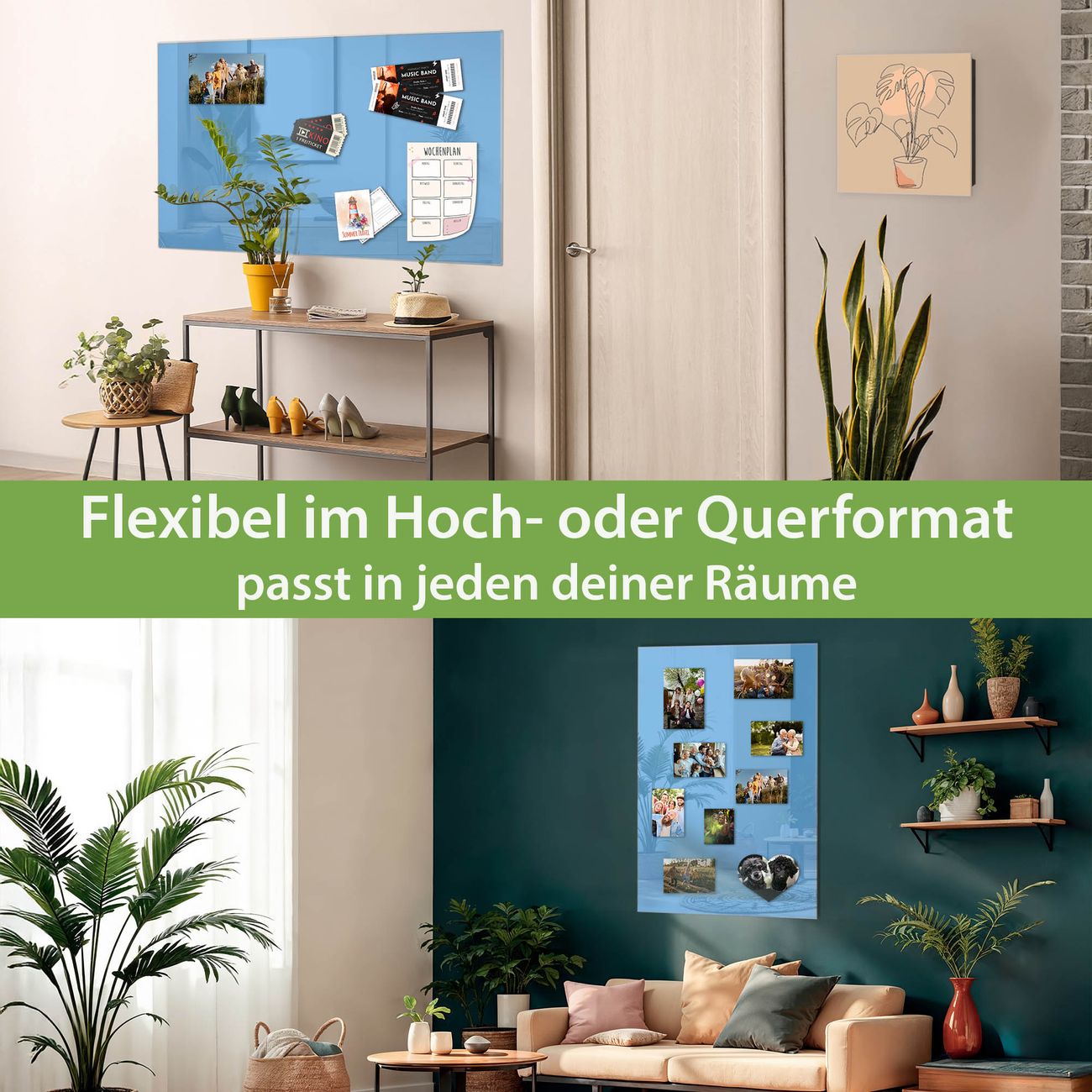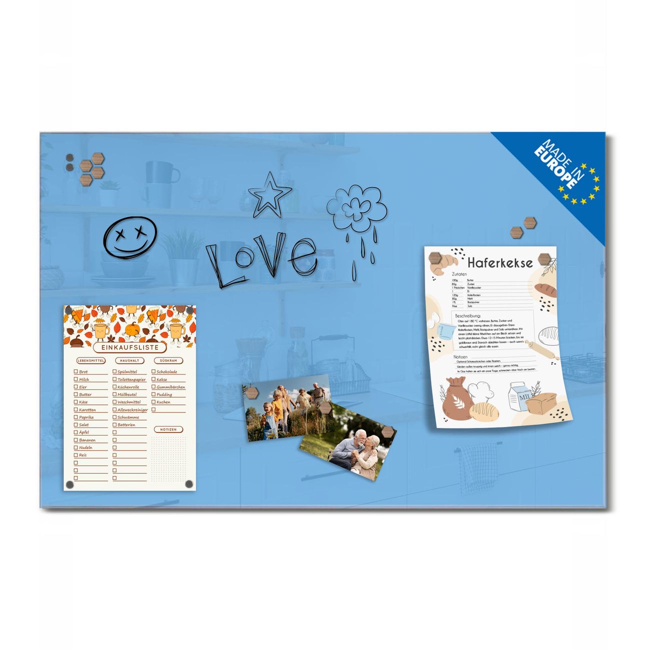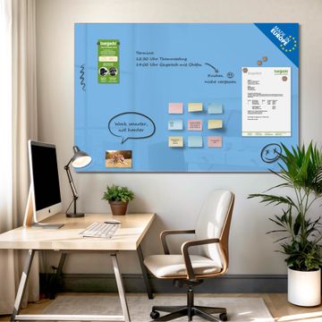 Glas Magnettafel im Querformat Farbe Pastellblau