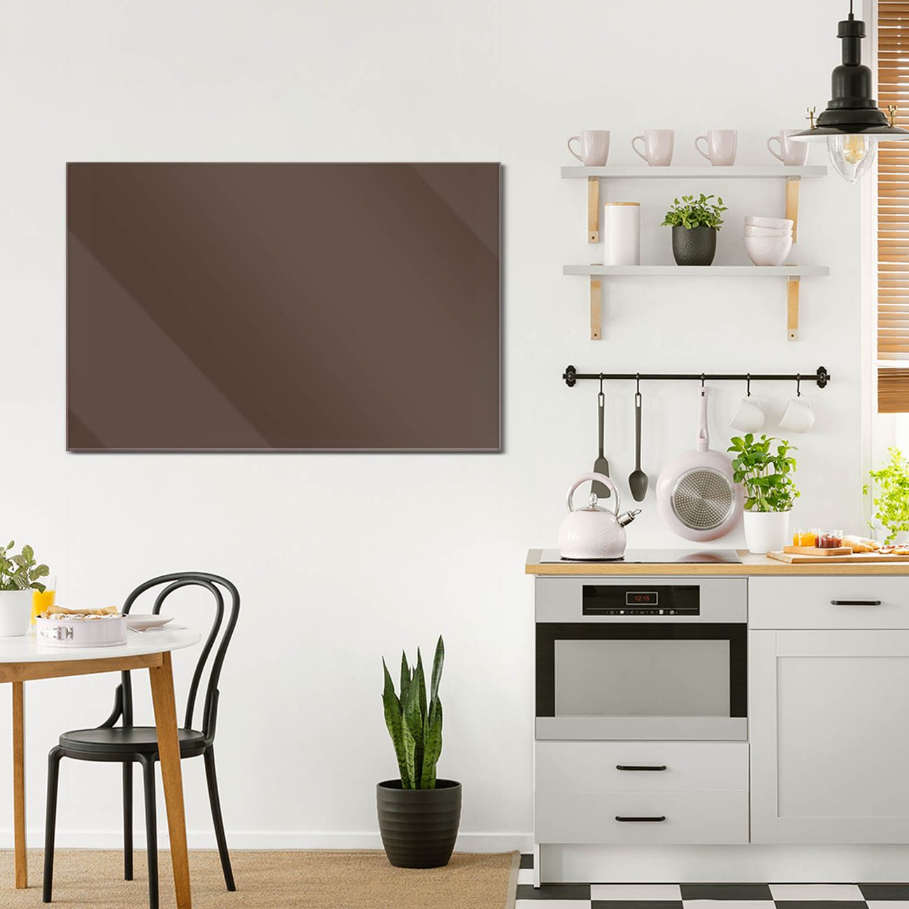 Material  4mm Sicherheitsglas mit Metallrückwand Eigenschaften  beschreibbar, magnetisch, kratzfest Maße  90x60x0,6cm, 8,10kg schwer Farbe  Nummer 21 Schokobraun Zubehör  inklusive 4 Neodym-Magnete