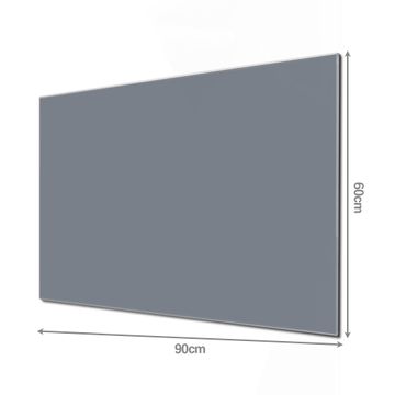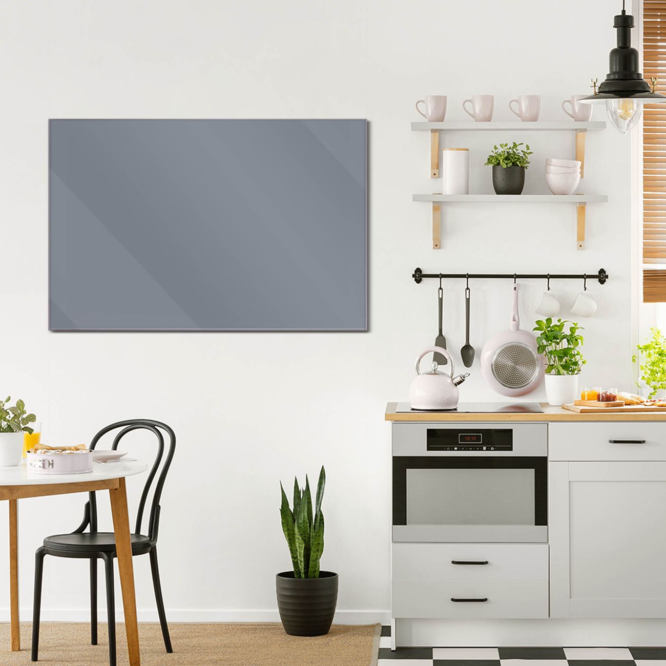 Material: 4mm Sicherheitsglas mit Metallrückwand Eigenschaften: beschreibbar, magnetisch, kratzfest Maße: 90x60x0,6cm, 8,10kg schwer Farbe Nummer 0026 Silber Metallic Zubehör: inklusive 4 Neodym-Magnete