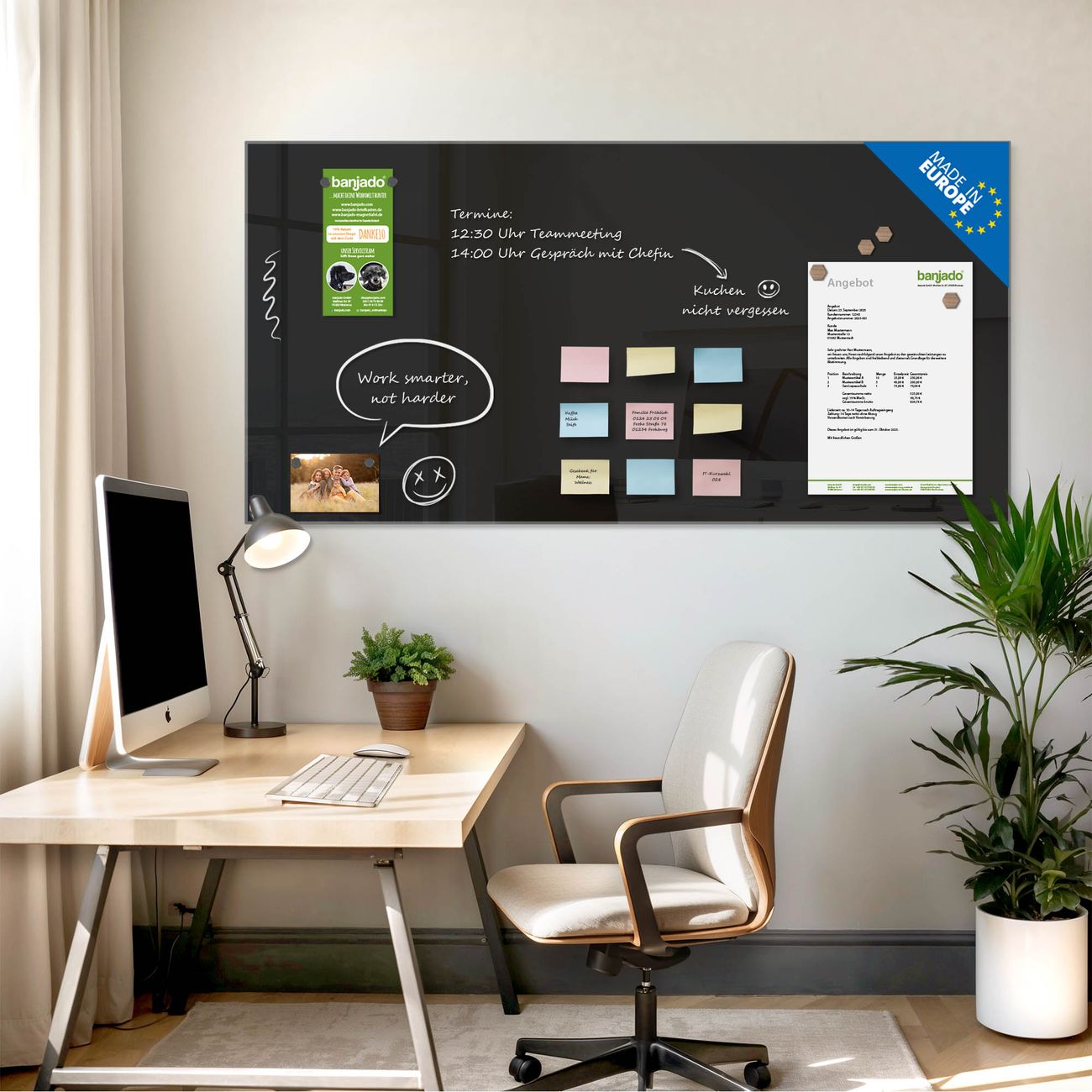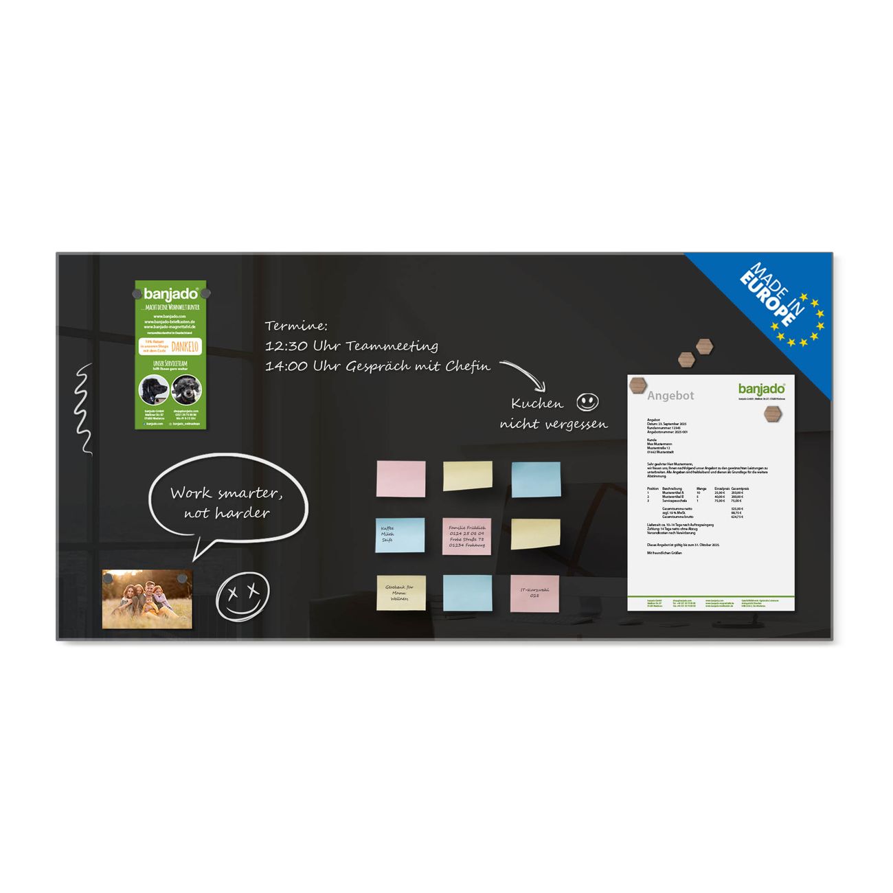 Glas Magnettafel im Querformat Farbe Tiefschwarz