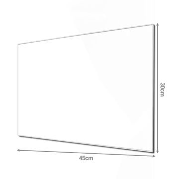 Material: 4mm Sicherheitsglas mit Metallrückwand Eigenschaften: beschreibbar, magnetisch, kratzfest Maße: 45x30x0,6cm, 2,03kg schwer Farbe Nummer 0024 weiß Zubehör: inklusive 4 Neodym-Magnete