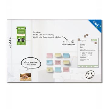 Die banjado Glas Magnettafel im Querformat mit Motiv Farbe weiß bringt Ordnung in Ihr Zettelchaos. Fotos, Termine, Notizen oder Rezepte lassen Sich hier stilvoll mit Magneten ordnen, so behalten Sie alles Wichtige im Blick. Das Memoboard aus Glas ist beschreibbar und wird Ihnen bereits mit 4 Neodym-Magneten geliefert. Das Format bietet Ihnen ausreichend Platz um alle wichtigen Informationen im Blick zu behalten.