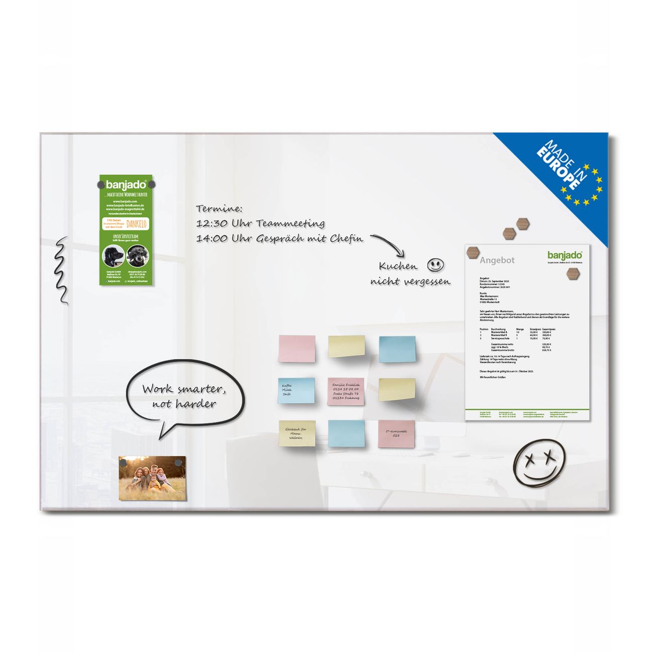 Bitte beachten Sie, dass ausschliessliche spezielle Magnete an der Glastafel haften. Wir empfehlen banjado Neodym Magnete, diese sind durch uns auf Wirksamkeit geprüft.