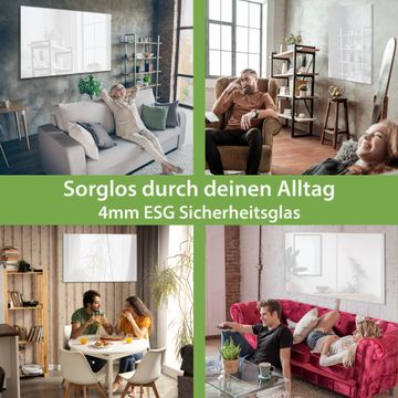 Auf der glatten Glasoberfläche lassen sich Termine, Rezepte oder Notizen ganz einfach mit Kreidestiften festhalten und rückstandslos entfernen. Starke Neodym-Magnete halten Ihre wichtigsten Erinnerungen sicher an Ort und Stelle. So entsteht Ihre ganz persönliche Ideenwand - jeden Tag neu.