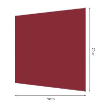 Material: 4mm Sicherheitsglas mit Metallrückwand Eigenschaften: beschreibbar, magnetisch, kratzfest Maße: 70x70x0,6cm, 10,50 kg schwer Farbe Nummer 0013 Burgund Zubehör: inklusive 4 Neodym-Magnete