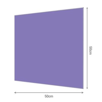Material: 4mm Sicherheitsglas mit Metallrückwand Eigenschaften: beschreibbar, magnetisch, kratzfest Maße: 50x50x0,6cm, 5,25 kg schwer Farbe Nummer 0015 Lavendel Zubehör: inklusive 4 Neodym-Magnete