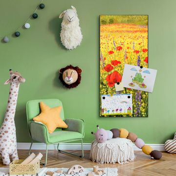 Motiv Feld Mit Mohnblumen Nr. 12286 Größe: 37x78x2cm BxHxT Gewicht: ca. 2,10 kg Material: Stahl schwarz lackiert, Premiumfolie Magnete: für Dekomagnete geeignet beschreibbar: Nein Format: Hochformat Zubehör: 4 Magnete, Schrauben und Dübel