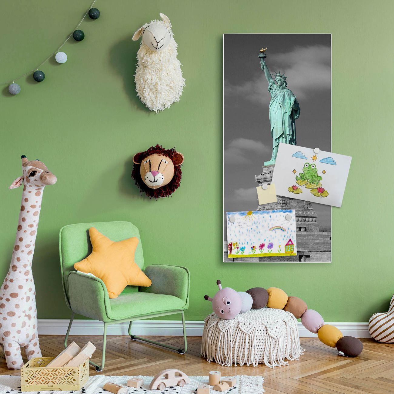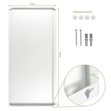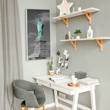 FUNKTION:  Die banjado Magnettafel mit Motiv Freiheitsstatue Motiv bringt Ordnung in Ihr Zettelchaos. Fotos, Termine, Notizen oder Rezepte lassen Sich hier stilvoll mit Magneten ordnen, Sie behalten alles im Blick. An der Design Magnettafel halten alle handesüblichen Magnete. DESIGN:  Die magnetische Pinnwand mit dem Motiv Motiv Freiheitsstatue ist ein eleganter Begleiter im Alltag. Mit dieser Memotafel aus Metall haben Sie auch ohne Notizen und Magnete ein schönes Dekoelement. Das Format bietet Ihnen ausreichend Platz um alle wichtigen Informationen im Blick zu behalten. DETAILS:  Die Magnettafel besteht aus silber-grau, weiß oder schwarzlackiertem Stahl. Sie hat eine Größe von 37 x 78 x 2cm. Es befinden sich auf der Rückseite vorgefertigte Aufhängungen die eine schnelle und unkomplizierte Anbringung ermöglichen. Das Motiv ist mit einem seidenmatten Laminat versehen und schützt so zusätzlich vor Kratzern. NUTZEN:  Sie können dieses Memoboard groß als Wandbild nutzen, es halten alle handelsüblichen Magneten daran. Die Pinnwand ist mit einem feuchten Lappen oder Schwamm abwischbar. Sie finden bei uns eine große Auswahl an passenden Magneten. BANJADO:  Wir sind ein kleines Team aus dem Herzen von Sachsen. Wir fertigen alle Artikel von Hand für Sie an, Sie erhalten keine preiswerte Importware. Auf Wunsch können Sie auch Ihr eigenes Foto auf die Magnettafel aufbringen, schreiben Sie uns an. Herzlichst, Ihr banjado-Team