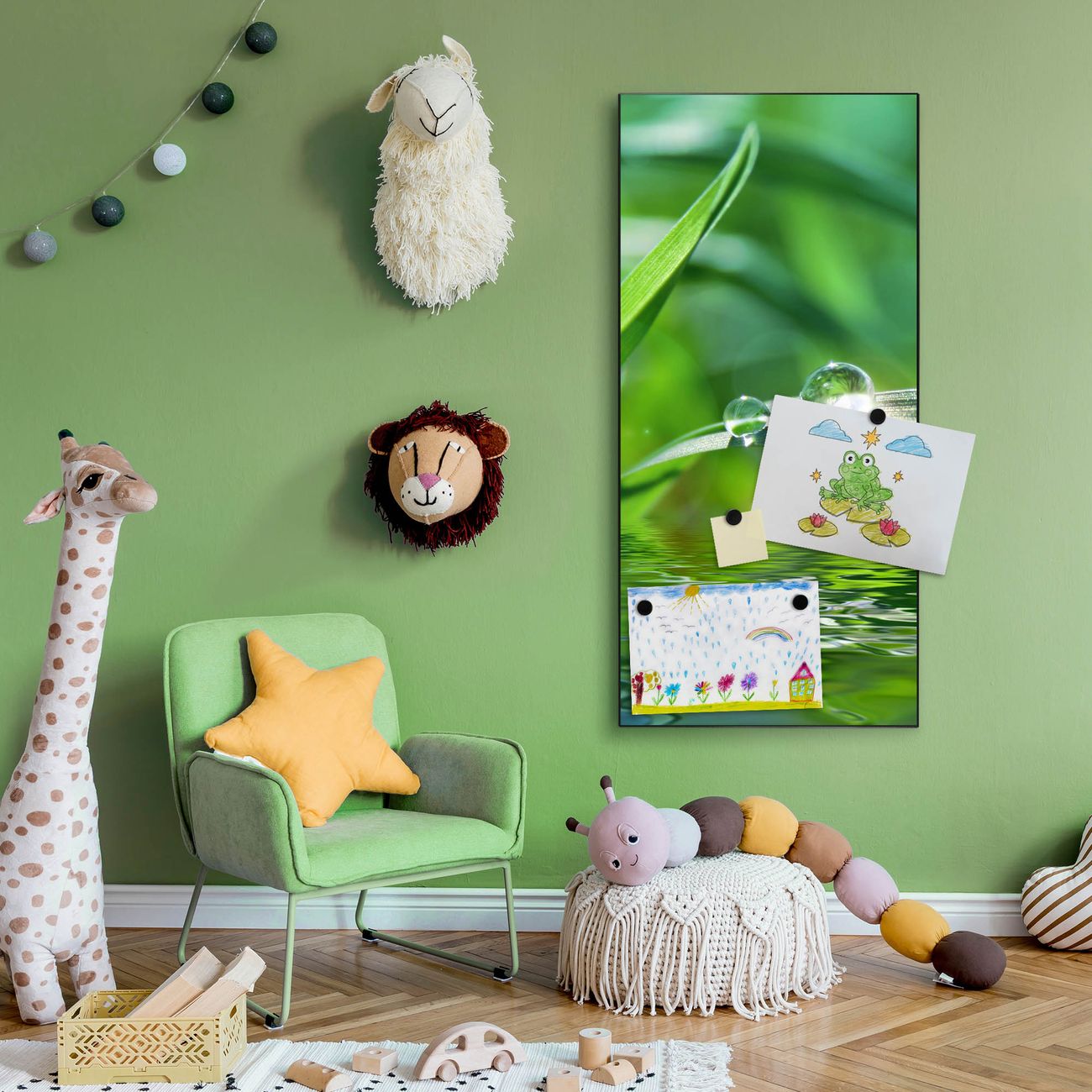 Motiv Morgentau Nr. 10235 Größe: 37x78x2cm BxHxT Gewicht: ca. 2,10 kg Material: Stahl schwarz lackiert, Premiumfolie Magnete: für Dekomagnete geeignet beschreibbar: Nein Format: Hochformat Zubehör: 4 Magnete, Schrauben und Dübel