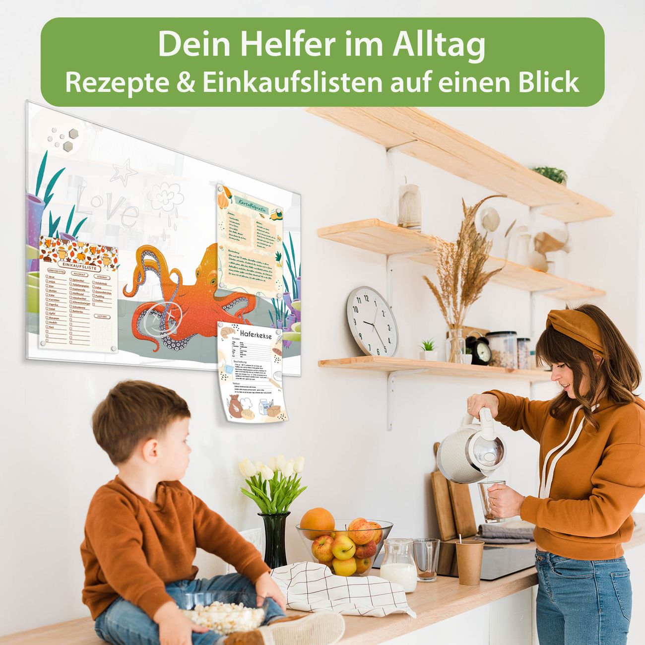 Ein Stück Design, das Ihren Alltag organisiert. Schreiben, heften, inspirieren - alles an einem Ort. Qualität, die man spürt. Montage leicht gemacht. Handwerk mit Herz - veredelt in Sachsen. Einzigartiges Design mit Motiv Motiv Abenteuer im Ozean Beschreibbare Glasoberfläche, leicht zu reinigen Starke Magnetkraft durch Stahlrückwand Inklusive 4 Neodym-Magneten Flexible Montageoptionen Handveredelt in Sachsen - Qualität, die bleibt