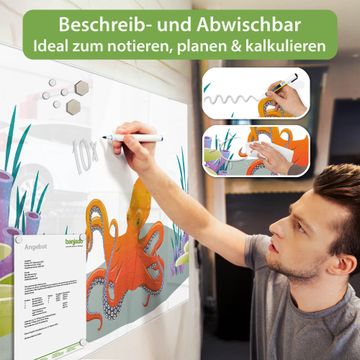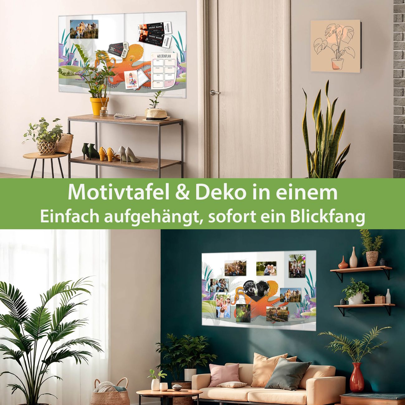 Die banjado Glas Magnettafel mit dem Motiv Motiv Abenteuer im Ozean verbindet Funktionalität mit Stil. Sie ersetzt das Zettelchaos durch klare Strukturen und bringt dabei eine warme, natürliche Atmosphäre in Ihr Zuhause. Ob im Büro, in der Küche oder im Eingangsbereich - dieses Design-Board zieht Blicke an und sorgt für Ordnung mit Charakter.