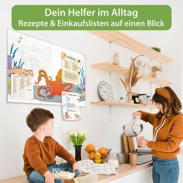 Auf der glatten Glasoberfläche lassen sich Termine, Rezepte oder Notizen ganz einfach mit Kreidestiften festhalten und rückstandslos entfernen. Starke Neodym-Magnete halten Ihre wichtigsten Erinnerungen sicher an Ort und Stelle. So entsteht Ihre ganz persönliche Ideenwand - jeden Tag neu.