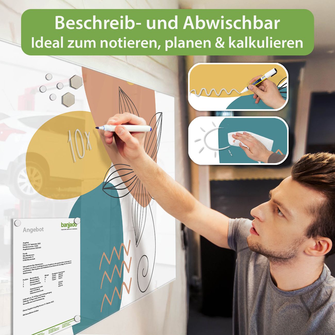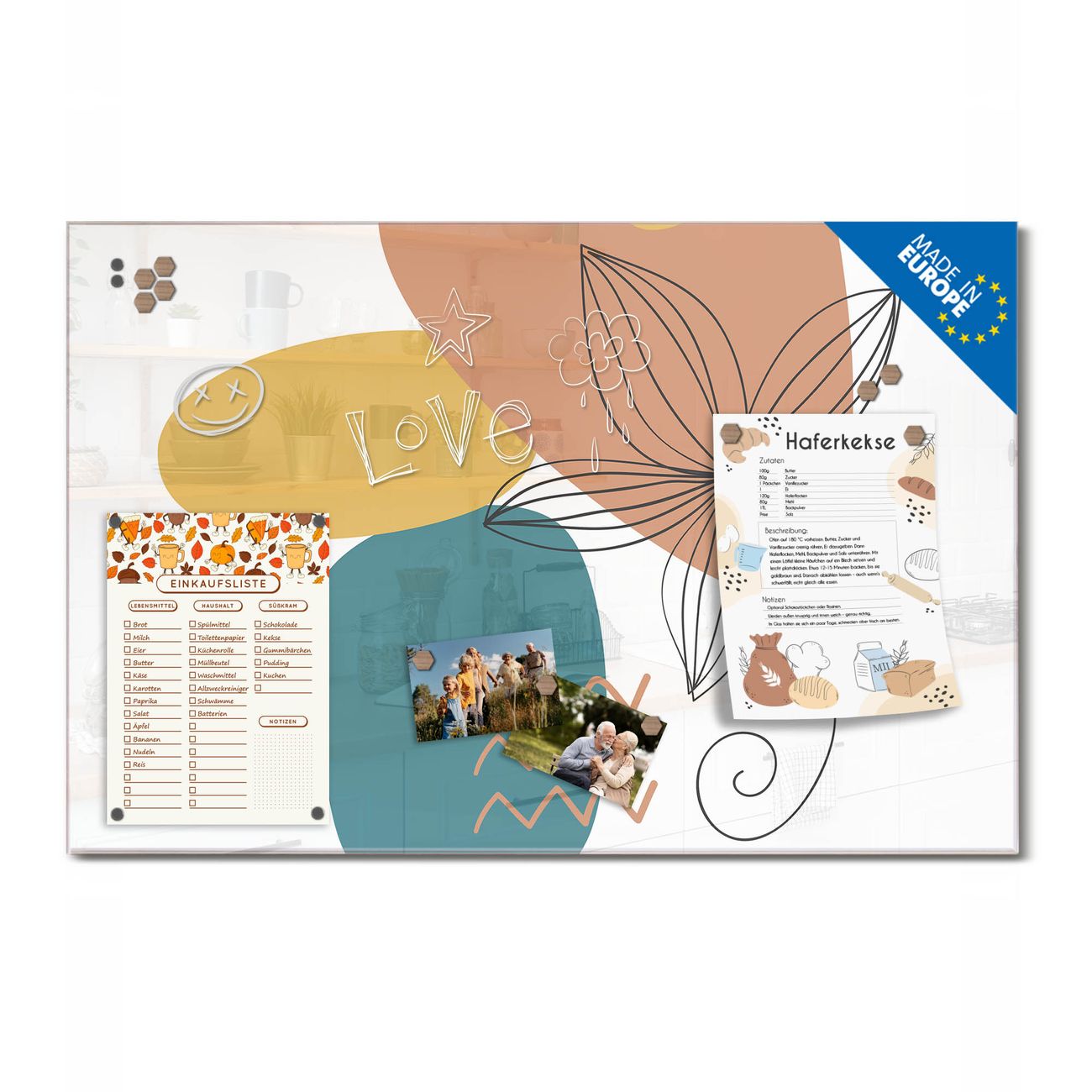 Glas Magnettafel im Querformat Motiv Abstrakte Blumenkontur