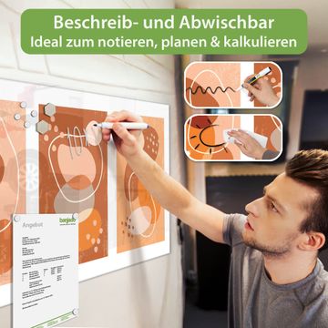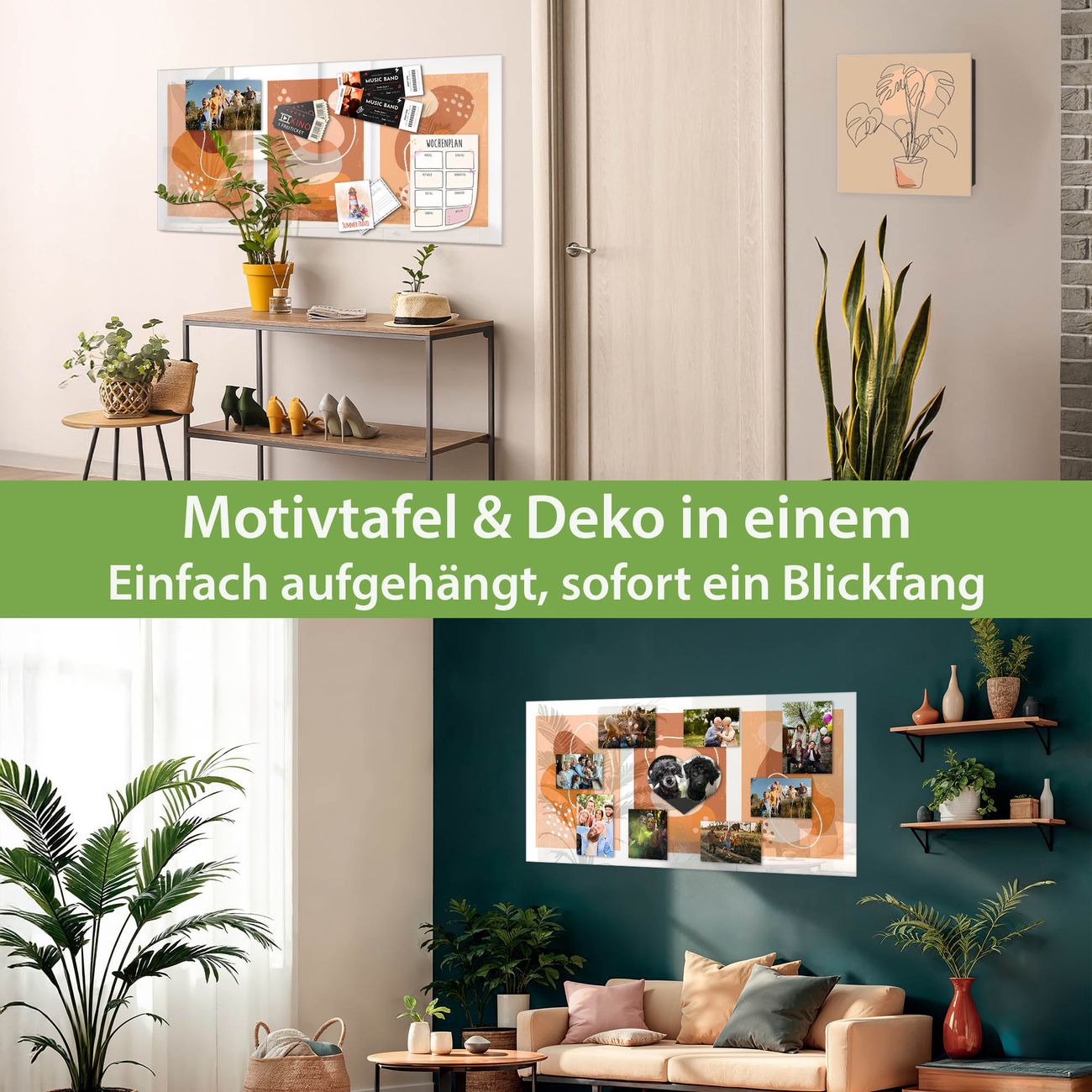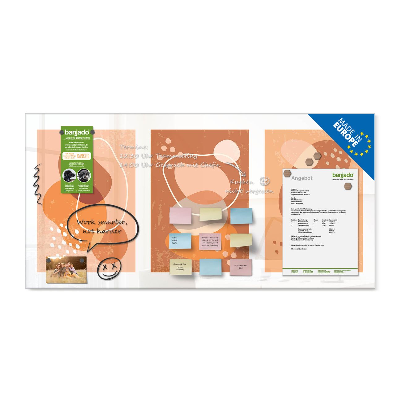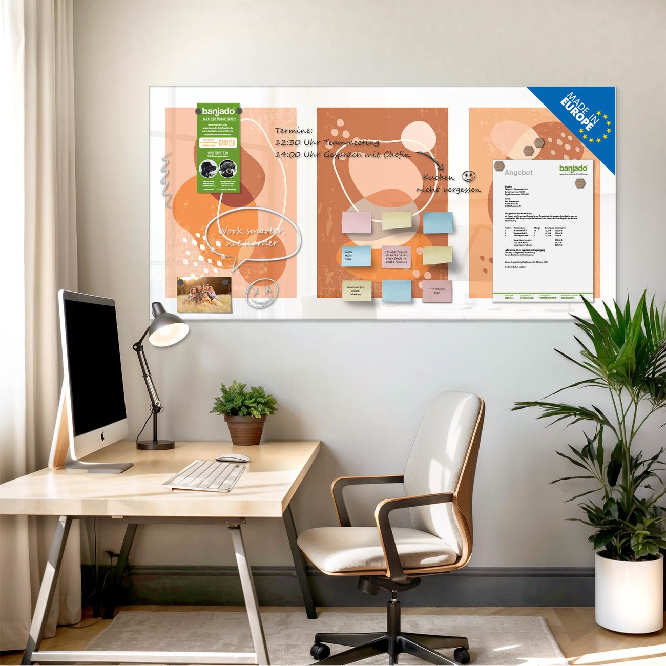 Die banjado Glas Magnettafel mit dem Motiv Motiv Abstrakte Farbkomposition verbindet Funktionalität mit Stil. Sie ersetzt das Zettelchaos durch klare Strukturen und bringt dabei eine warme, natürliche Atmosphäre in Ihr Zuhause. Ob im Büro, in der Küche oder im Eingangsbereich - dieses Design-Board zieht Blicke an und sorgt für Ordnung mit Charakter.