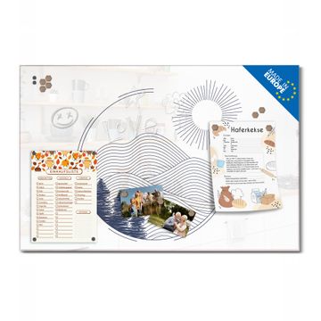 Auf der glatten Glasoberfläche lassen sich Termine, Rezepte oder Notizen ganz einfach mit Kreidestiften festhalten und rückstandslos entfernen. Starke Neodym-Magnete halten Ihre wichtigsten Erinnerungen sicher an Ort und Stelle. So entsteht Ihre ganz persönliche Ideenwand - jeden Tag neu.