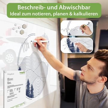 Gefertigt aus gehärtetem Sicherheitsglas mit einer magnetischen Rückwand aus Stahl überzeugt diese Magnettafel durch Stabilität und Langlebigkeit. Die Oberfläche bleibt dauerhaft brillant und pflegeleicht, selbst bei täglicher Nutzung.