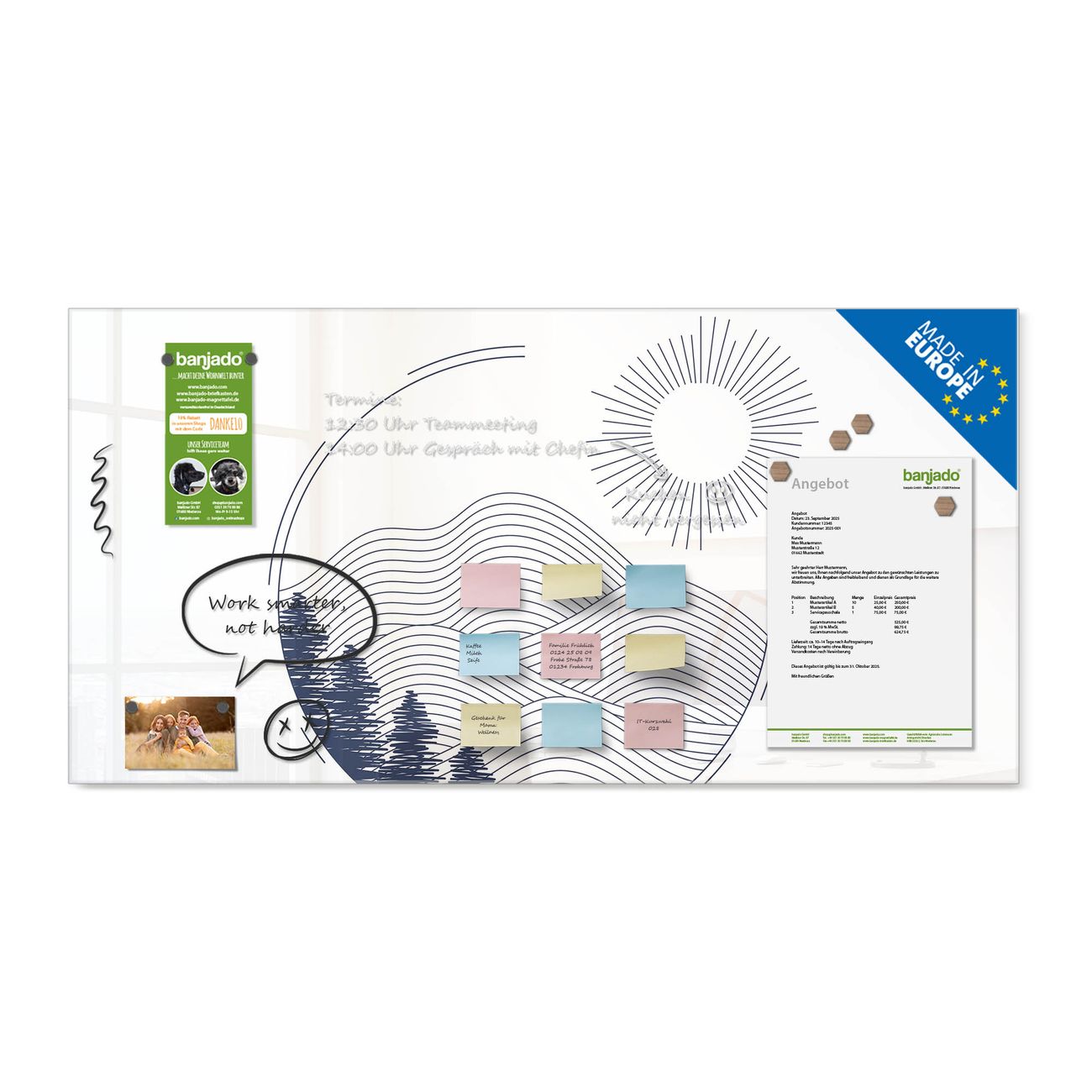 Jede Glas Magnettafel wird in unserer Werkstatt von Hand gefertigt und sorgfältig geprüft. So erhalten Sie ein echtes Qualitätsprodukt, das Funktion und Ästhetik perfekt vereint.?? Warum banjado?
