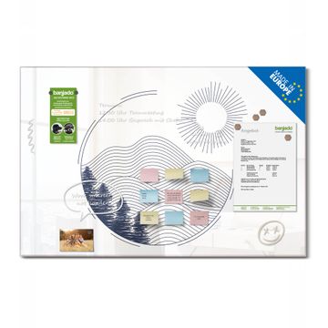 Auf der glatten Glasoberfläche lassen sich Termine, Rezepte oder Notizen ganz einfach mit Kreidestiften festhalten und rückstandslos entfernen. Starke Neodym-Magnete halten Ihre wichtigsten Erinnerungen sicher an Ort und Stelle. So entsteht Ihre ganz persönliche Ideenwand - jeden Tag neu.
