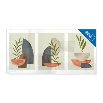 Material: 4mm Sicherheitsglas mit Metallrückwand Eigenschaften: beschreibbar, magnetisch, kratzfest Maße: 100x50x0,6cm, 7,50kg schwer Motiv Nummer 13216 Abstrakte Naturgeometrie Zubehör: inklusive 4 Neodym-Magnete