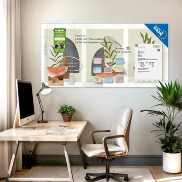 Gefertigt aus gehärtetem Sicherheitsglas mit einer magnetischen Rückwand aus Stahl überzeugt diese Magnettafel durch Stabilität und Langlebigkeit. Die Oberfläche bleibt dauerhaft brillant und pflegeleicht, selbst bei täglicher Nutzung.