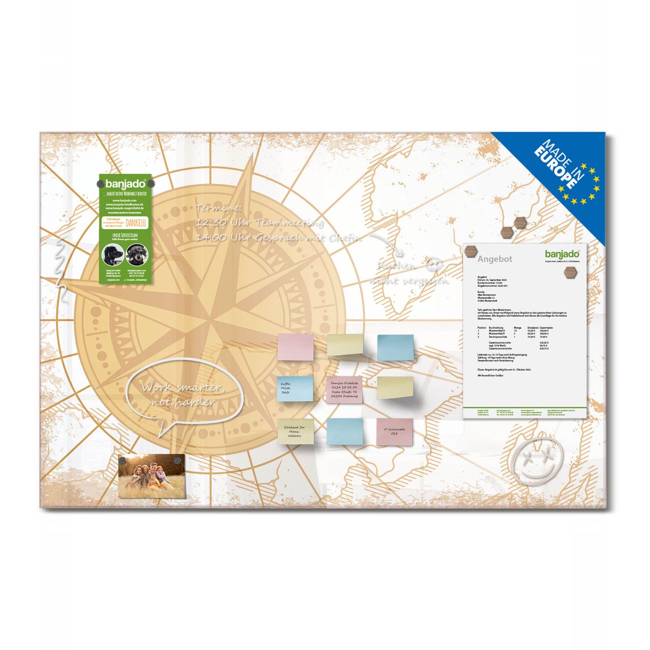 Glas Magnettafel im Querformat Motiv Antike Kompassrose