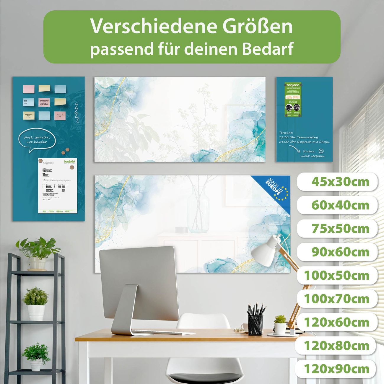 Ein Stück Design, das Ihren Alltag organisiert. Schreiben, heften, inspirieren - alles an einem Ort. Qualität, die man spürt. Montage leicht gemacht. Handwerk mit Herz - veredelt in Sachsen. Einzigartiges Design mit Motiv Motiv Aquarellfluss Beschreibbare Glasoberfläche, leicht zu reinigen Starke Magnetkraft durch Stahlrückwand Inklusive 4 Neodym-Magneten Flexible Montageoptionen Handveredelt in Sachsen - Qualität, die bleibt