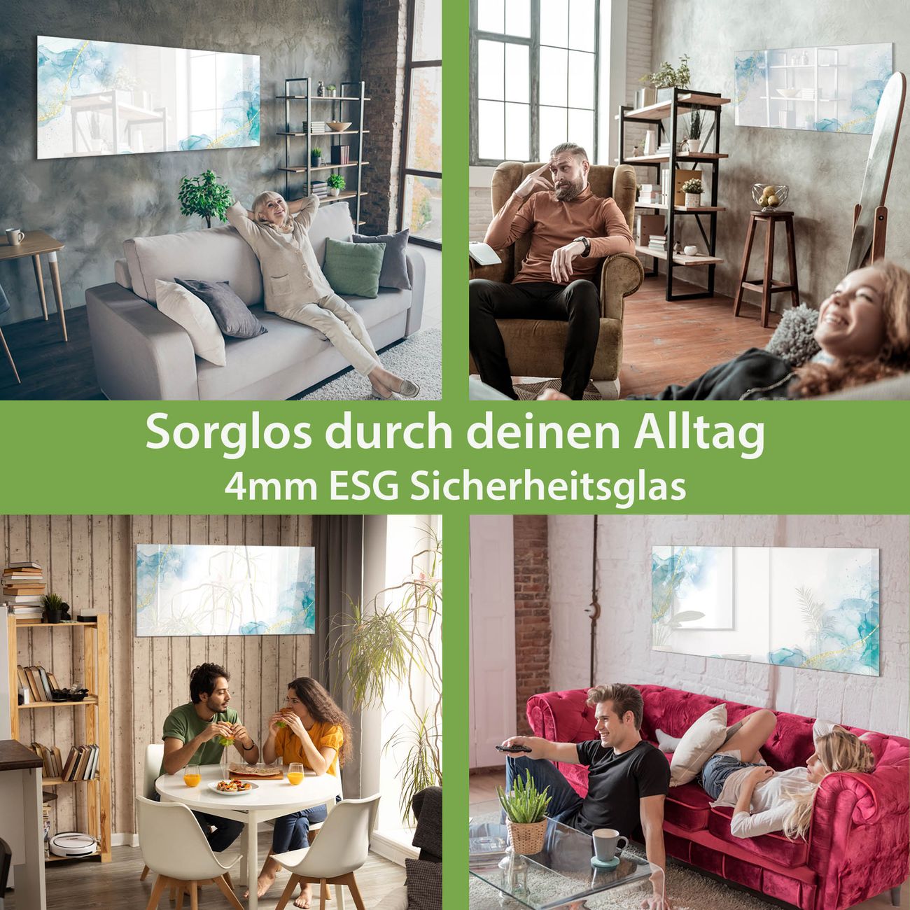 Material: 4mm Sicherheitsglas mit Metallrückwand Eigenschaften: beschreibbar, magnetisch, kratzfest Maße: 120x60x0,6cm, 10,80kg schwer Motiv Nummer 13138 Aquarellfluss Zubehör: inklusive 4 Neodym-Magnete