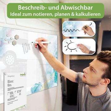 Die banjado Glas Magnettafel mit dem Motiv Motiv Aquarellfluss verbindet Funktionalität mit Stil. Sie ersetzt das Zettelchaos durch klare Strukturen und bringt dabei eine warme, natürliche Atmosphäre in Ihr Zuhause. Ob im Büro, in der Küche oder im Eingangsbereich - dieses Design-Board zieht Blicke an und sorgt für Ordnung mit Charakter.