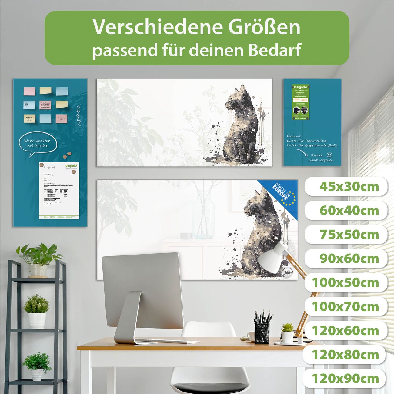 Material: 4mm Sicherheitsglas mit Metallrückwand Eigenschaften: beschreibbar, magnetisch, kratzfest Maße: 100x50x0,6cm, 7,50kg schwer Motiv Nummer 13449 Aquarellkatze 2 Zubehör: inklusive 4 Neodym-Magnete