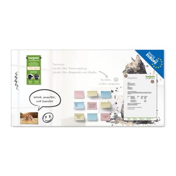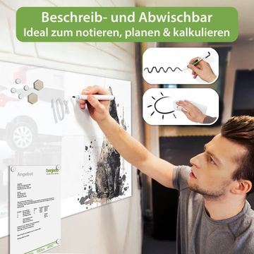 Auf der glatten Glasoberfläche lassen sich Termine, Rezepte oder Notizen ganz einfach mit Kreidestiften festhalten und rückstandslos entfernen. Starke Neodym-Magnete halten Ihre wichtigsten Erinnerungen sicher an Ort und Stelle. So entsteht Ihre ganz persönliche Ideenwand - jeden Tag neu.